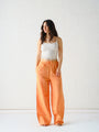 Bright, relaxed, and unapologetically summery — the Sunset Stripe Lounge Pants are designed to capture the warmth of golden hour. Crafted in 100% signature cotton, the fabric feels breathable and lightweight against the skin, making it ideal for beach days and slow vacation mornings. The vertical stripe pattern in vibrant sunset tones creates an elongating effect while adding playful energy to the silhouette. Designed with a relaxed wide-leg fit and soft structure, these pants move effortlessly with you — whether you’re strolling by the shore or lounging under the sun. Easy, expressive, and endlessly comfortable, this is summer dressing at its most effortless.