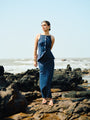 Elevate your style with this stunning navy blue and white thread striped skirt and vest set, a perfect blend of sophistication and effortless chic. The strapped vest, adorned with elevated buttons, adds a touch of modern elegance, while the full length skirt with a slit at the back exudes confidence and grace. This ensemble is ideal for those who embrace their "In Her Element" spirit, seeking to make a statement wherever they go. Fabric has this intricate embroidered thread work that elevates the appearance and makes it look very graceful.