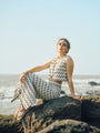 Mira Crochet Set, an exquisite resort wear set, crafted from 100% embroidered cotton crochet. The delicate, open weave provides breathable comfort, perfect for sun-drenched holidays and tropical vacations. Each piece exudes effortless elegance, enhanced by the unique, natural beauty of genuine seashell buttons. These buttons, with their subtle iridescence and organic texture, add a touch of coastal luxury to the intricately crocheted fabric. High waisted Skirt that fits like globe has a slit at the back finished hem with laces. This set is graceful & beautifully refined, enjoying a sunset dinner or travels abroad."