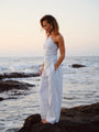 Effortlessly chic, this black and white striped set made with handwoven khadi handloom is perfect for summer days. The asymmetrical top with an elasticated back features a unique tie-up detail at the neck, adorned with delicate shell accents. Paired with relaxed-fit pants and handy side pockets, this set is both stylish and comfortable for lounging or vacations.